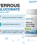 Ferrous gluconate is a form of iron that generally requires less stomach acid to digest and absorb. Therefore, ferrous gluconate is gentler on the stomach than most other forms of iron supplements.